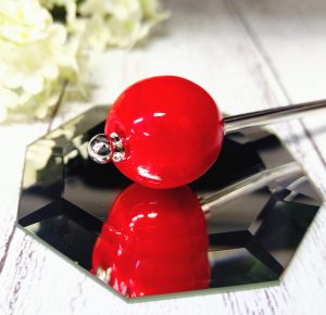 シンプルながら、目を引く真っ赤なとんぼ玉がとっても綺麗✨